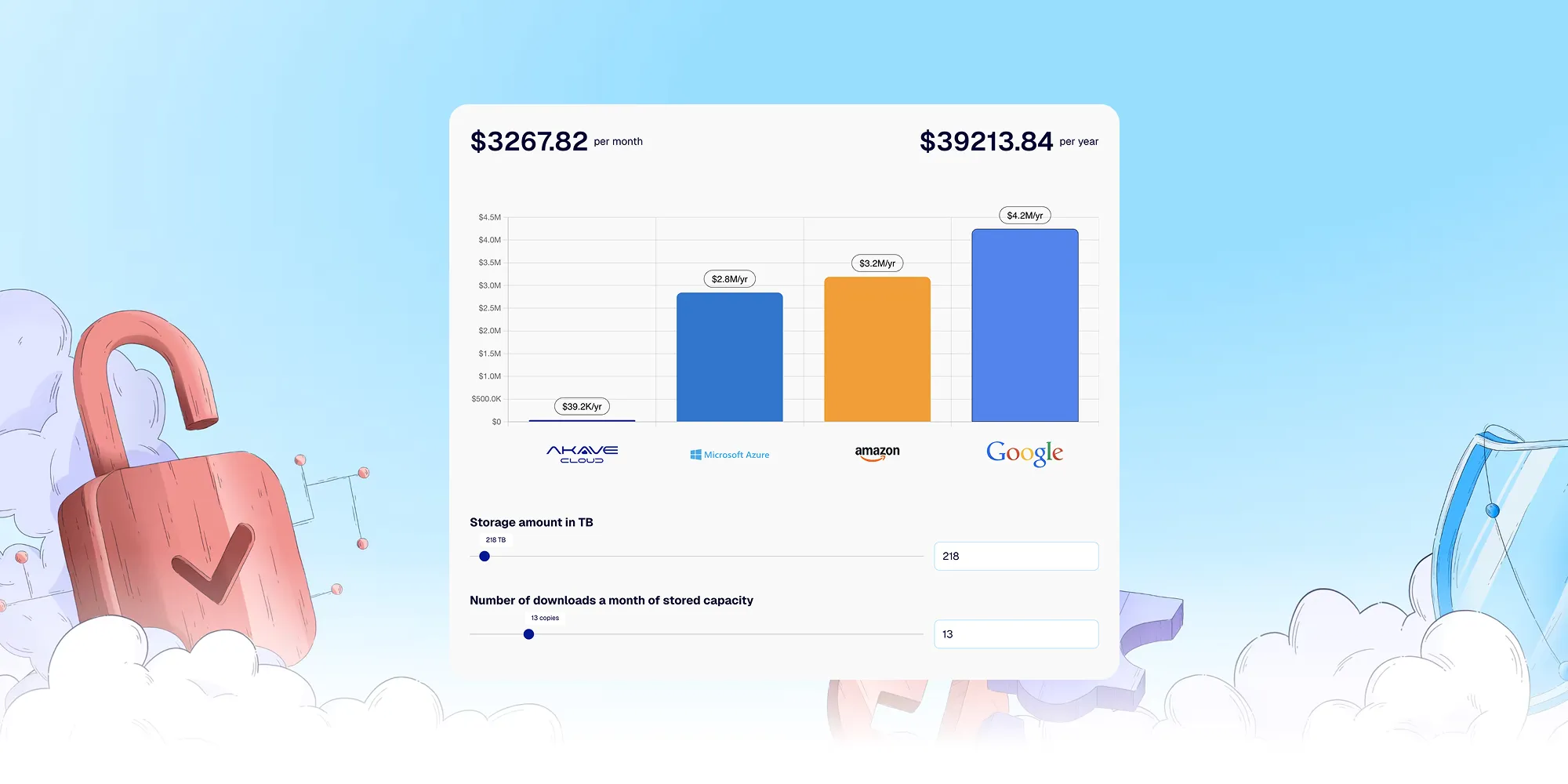 An S3-compatible cloud saving up to 80% on storage costs, with zero egress fees, verifiable audit trails, built-in ransomware protection and compliance-ready by design.