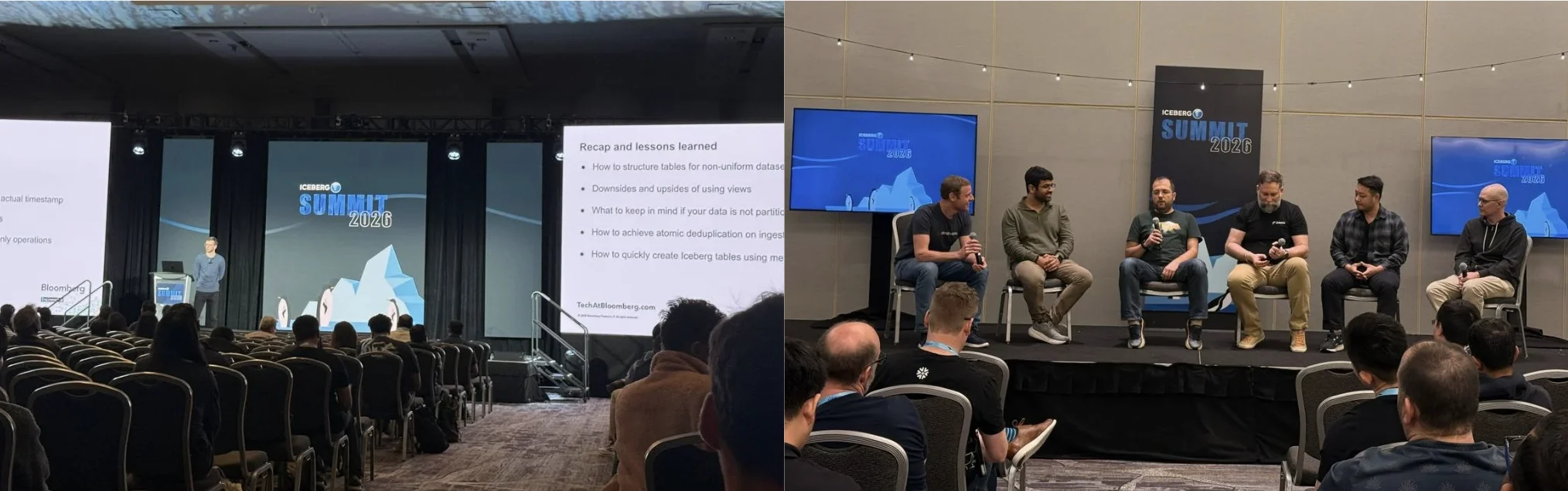 Across town at the Marriott Marquis, the Apache Iceberg Summit told a complementary story. Last year's sold-out event drew nearly 500 attendees; this year expanded to two full days with speakers from Apple, Bloomberg, Pinterest, and Wells Fargo, and sponsorship from Databricks, Snowflake, Redpanda, and Ryft. The format wars are over, Hive is universally acknowledged as dead, outmatched on performance and portability. Iceberg won.